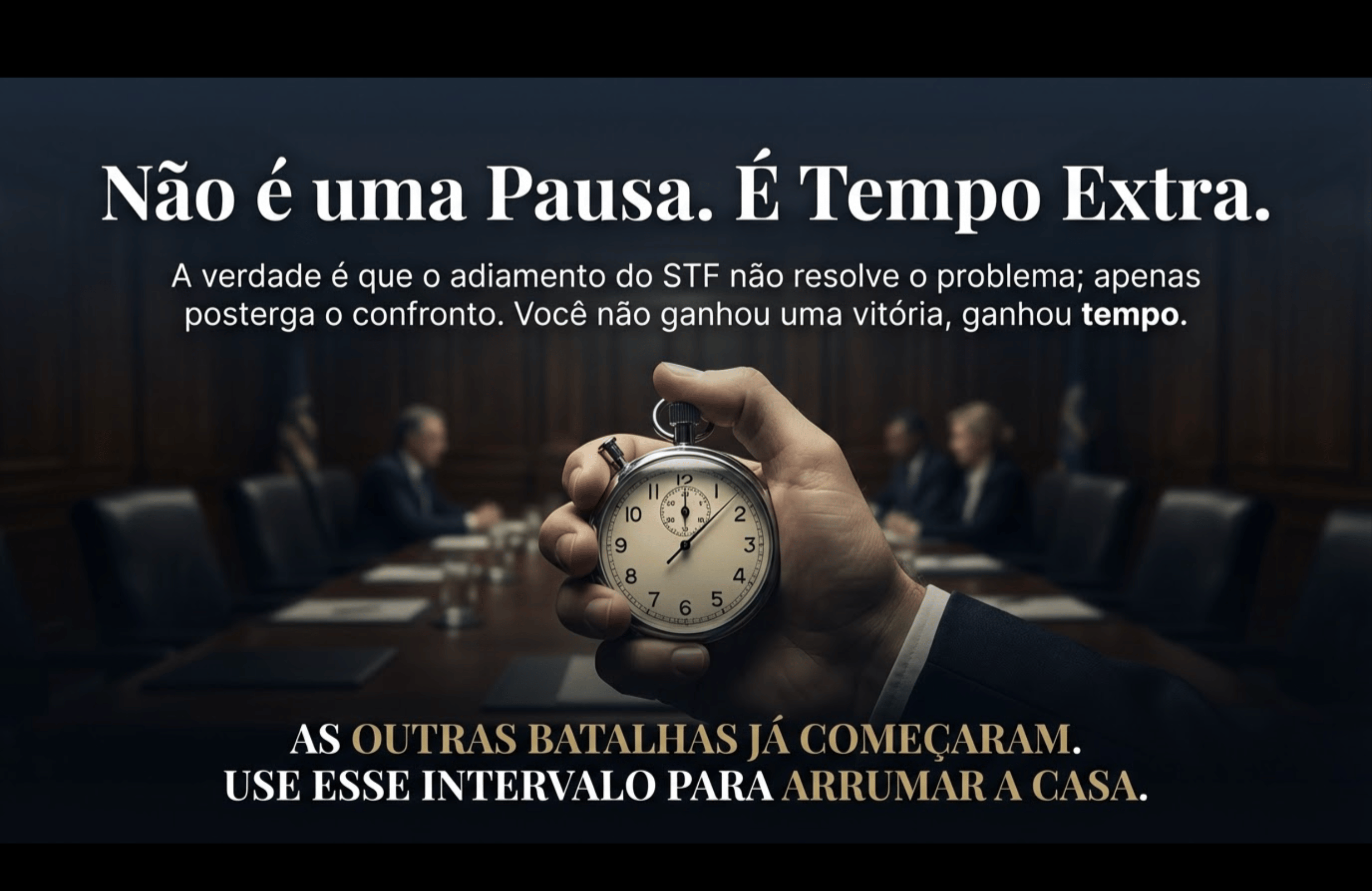 A verdade é que o adiamento do STF não é uma pausa. É um tempo extra que você ganhou para arrumar a casa. Porque as outras batalhas já começaram.